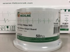 売り切れにつきFalcon 長期保存用スマートガードAquaAce PN0727を同価格にて販売させていただきます。(*ご注意:印刷範囲違います。内周にロゴ有。詳しくは画像↓↓をクリックしてください。) 52倍速 700MB ワイド23-119mm (ロゴ無) 50枚スピンドル UAE/アラブ首長国連邦製インクジェット対応ホワイトレーベル・スマートガード(耐水・光沢写真画質)耐水性/光沢性を有するインクジェットプリンタ対応レーベルAquaAce AquaAceは、従来のインクジェット対応レーベルに比べ、粒子が細かく、微細孔が素早くインクを吸着するため、速乾性に優れております。また、粒子が細かいことによりレーベル表面が滑らかであり、光沢性を有します。 AquaAceは、光沢写真用紙に用いられる材料を光ディスクに最適化したもので、発色性に優れ、印画紙に近い仕上がりに印刷できることも特徴の一つです。 写真など高画質のレーベル印刷を必要とする用途や、耐水性を求められる用途、及び速乾性が求められる現場等でご使用いただけます。 なお、AquaAceレーベルCD-R/DVD-Rは、セイコーエプソン(株)製ディスクデュプリケーター(PP-50シリーズ及びPP-100シリーズ)の認定メディアとなっております。Falcon製ダイヤモンドCD-Rはデータ書込面がCD-ROMの様な銀色で書いた跡が目立たちません。音楽業界、コンテンツ業界に最適!! 1ケ-ス300枚入、3ケース900枚まで1梱包できます。