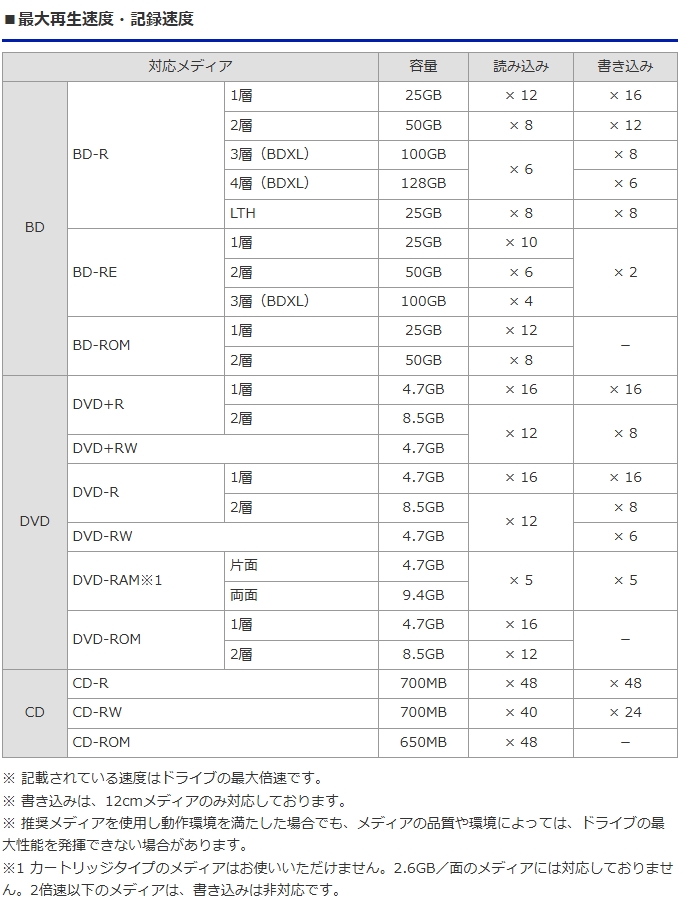BD-Rで最大16倍速の書き込み速度を実現した高速モデルです。